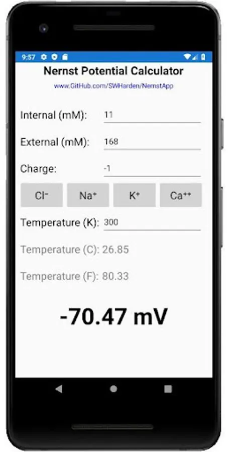 NernstApp is a tool which uses the Nernst equation to calculate the equilibrium potential for an ion based on its charge. This can be used to estimate the reversal potential of an ion across a biological membrane with selective ion channels.