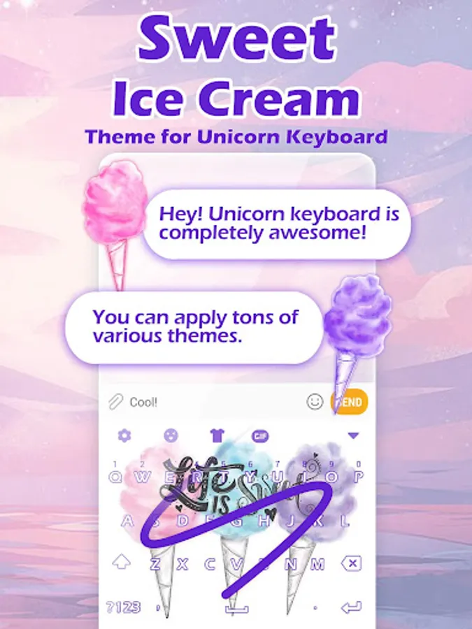 ✦ Dear girls, say hello to one of the top new keyboards for Android™ that will beautify your mobile screen with the Sweet Ice Cream Emoji Keyboard Theme and turn the process of texting into pure pleasure and enjoyment! Cute girly keyboards with emojis are waiting just for you. Download ★ Sweet Ice Cream Emoji Keyboard Theme ★ and enrich your display with vivid and colorful keyboard skins with the Sweet Ice Cream!