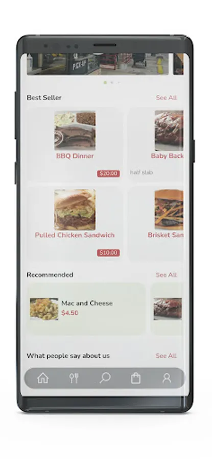 We serve pulled pork and chicken sandwiches, brisket, spare and baby back ribs, smoked chicken, mac and cheese, collard greens, cornbread, and more. Get the app to see the complete menu.