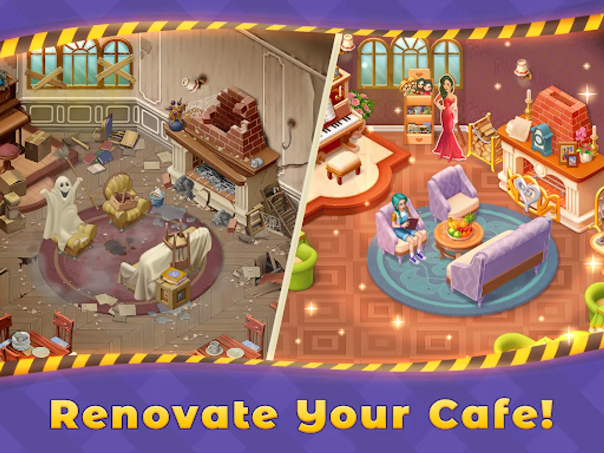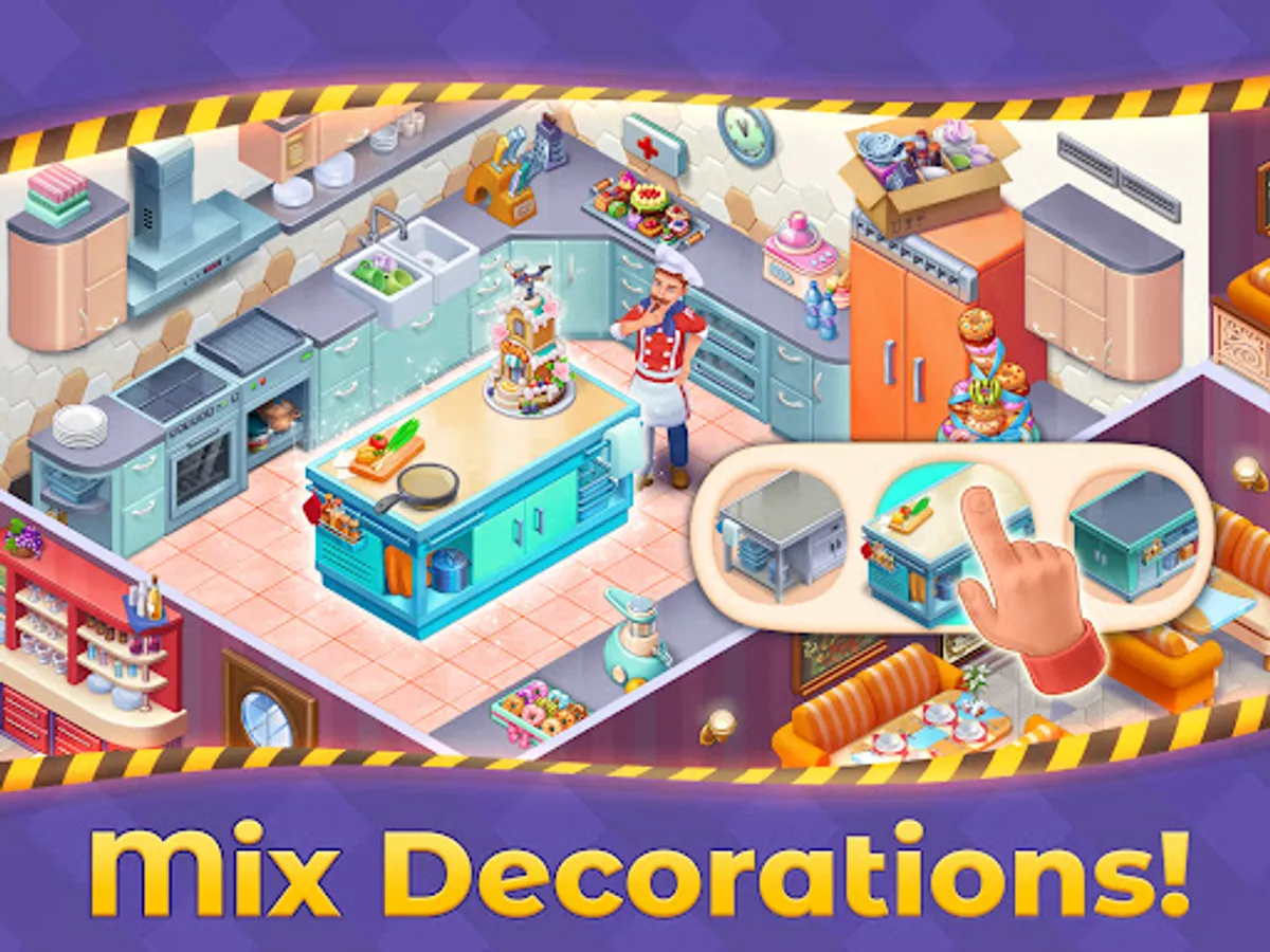 Make yourself at home. Decorate the cafe by solving the puzzle in the genre of free "Match-3" offline! Swap and match candies, beat colorful levels, earn stars, buy furniture and decorate room by room to your liking and discover new chapters in the exciting family saga about Orlando's cook! Beat colorful “3 in a row” levels to bring warmth and comfort back to wonderful family’s restaurant.