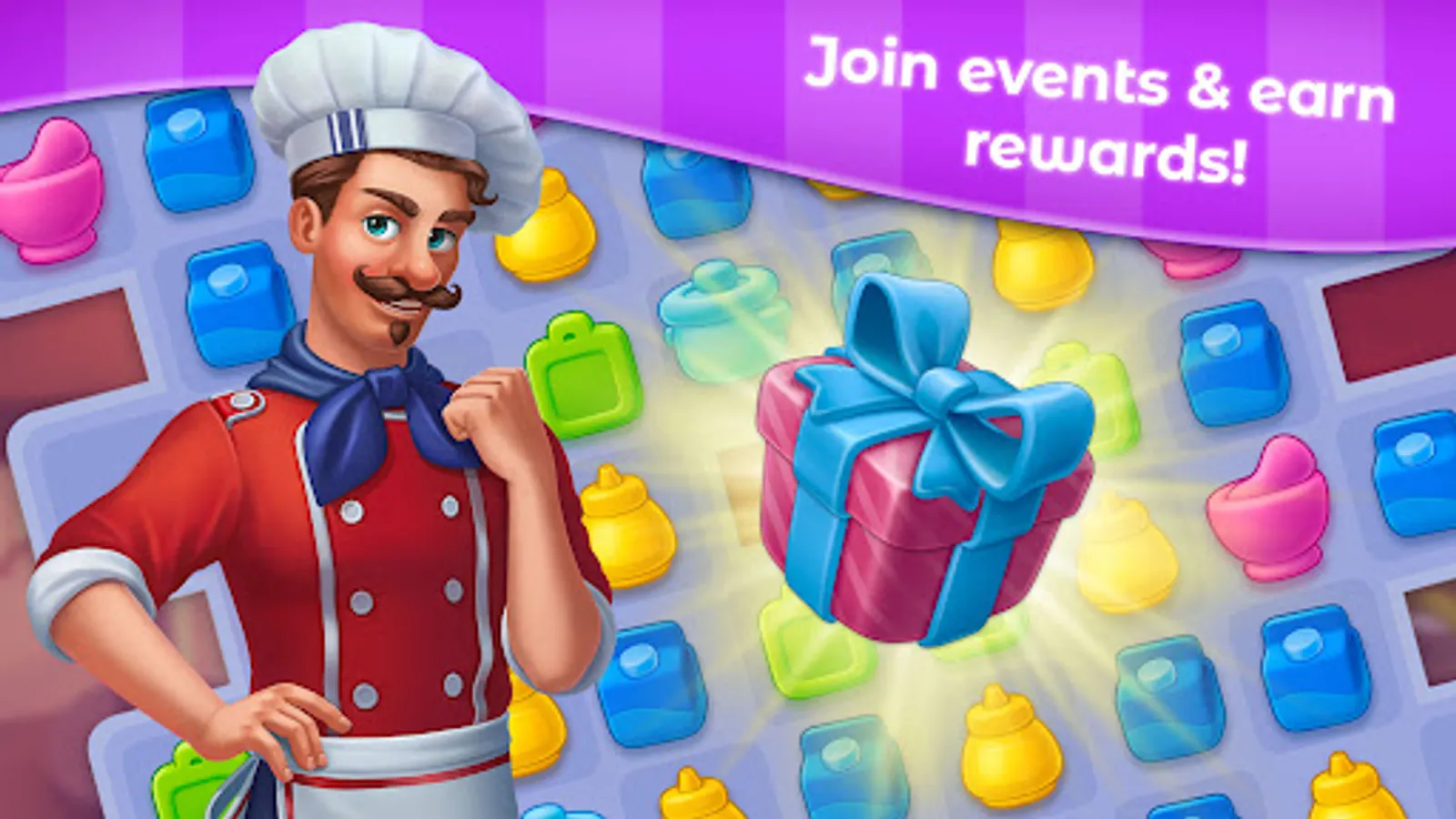 Match 3 in a row candies to renovate and decorate all six family cafes, complete the renovation and proceed to decorate the next café, making new friends in each chapter of the amazing story. Chef Orlando will be your guide in the world of breathtaking adventures!