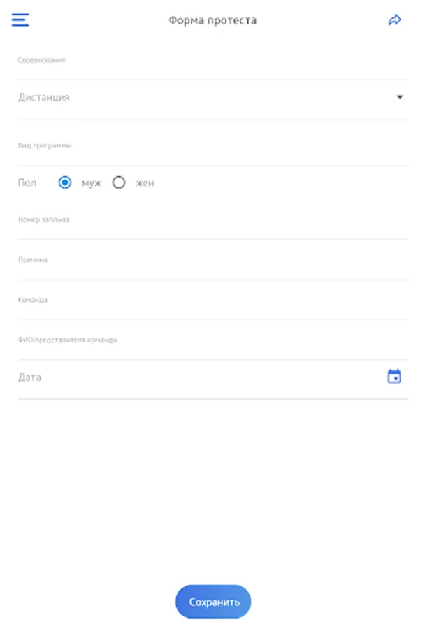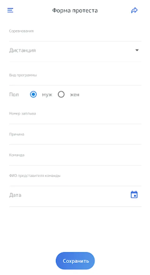 • A quick and convenient way to fill out a protest form, in accordance with the rules of the International Swimming Federation (FINA), with the ability to save the completed form in PDF format for printing, or share it.