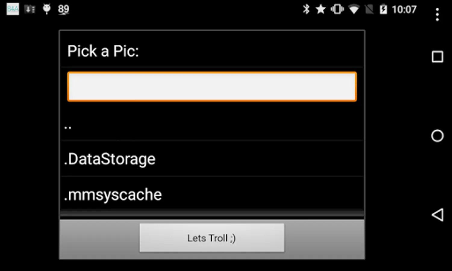1) Select the image that you would like to show your victim from the box that appears when you first open the app.