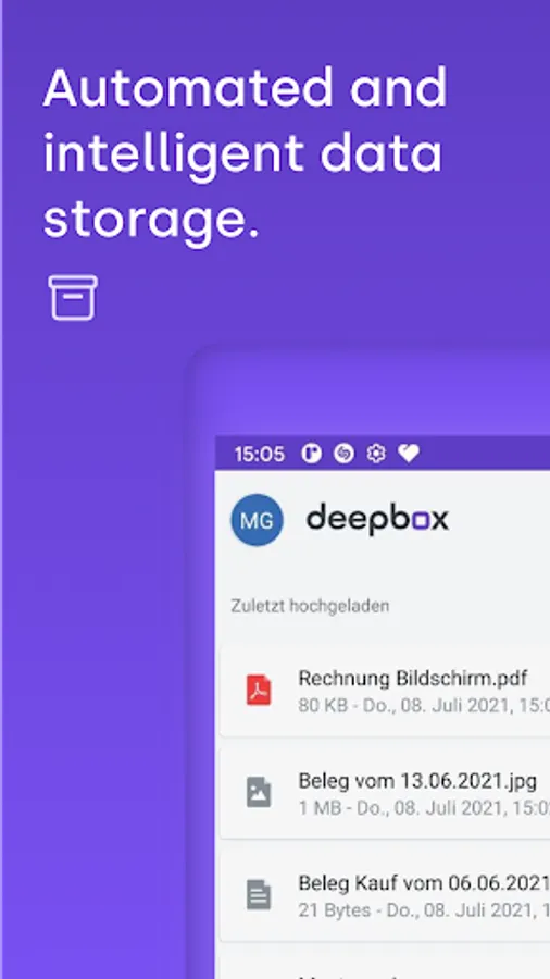 - They are recognized via AI (Artificial Intelligence), classified and automatically filed in the corresponding folders in your deepbox.