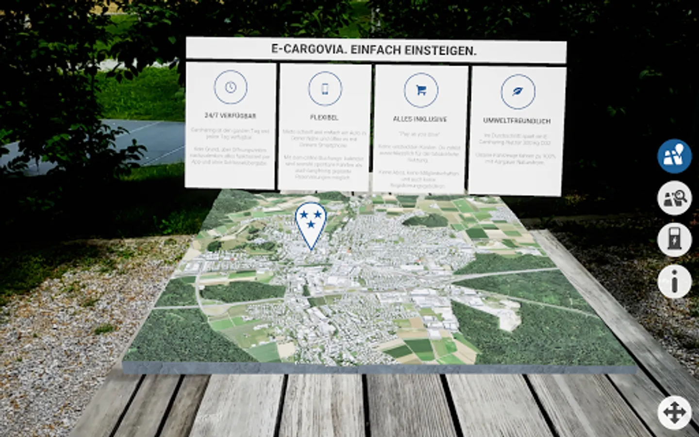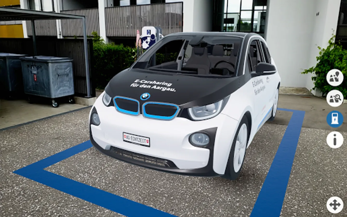 Experience two possible locations for e-cargovia car sharing in Lenzburg and place them in your living room using augmented reality as a 3D model.