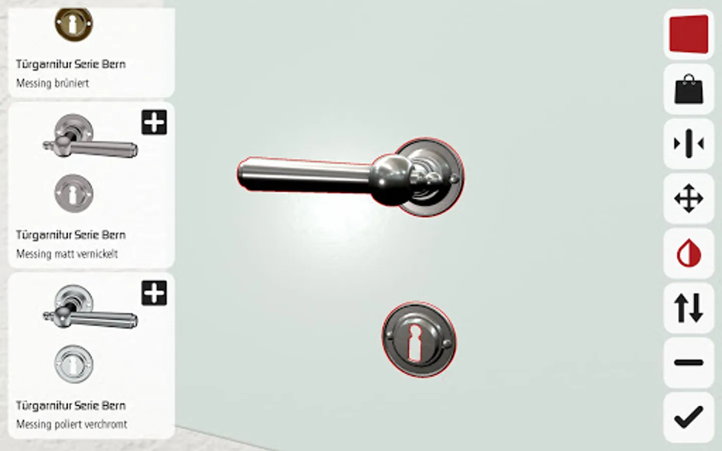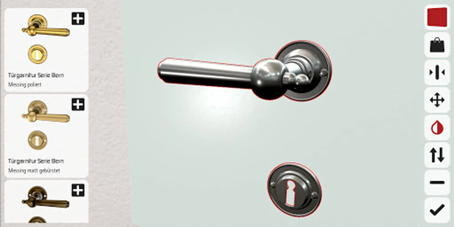 The users are guided via an icon bar that shows the possible variants. So you can choose between different door fittings from the Classic, Rustic or Modern series. If you have decided on a model, you can change the material, as well as the orientation of the door handle. This gives you the opportunity to present the customer with various combinations directly on the real door. With this visualization, the decision is easy for you and your customers. The app is available in German, French and Italian.