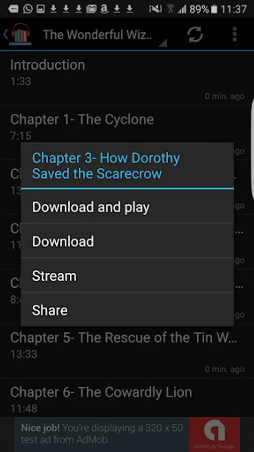 You have the choice of either listening via audio streaming from the internet or you can download the files to your device.
