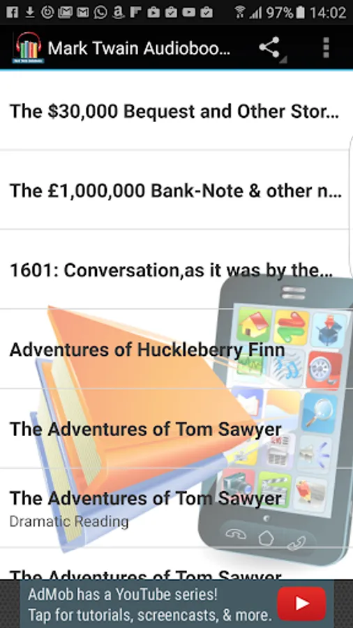 This Free Mark Twain Collection includes 50+of his most famous books, Essays and Journal Writings. All books are available in "Solo reading", some also as dramatic reading versions.