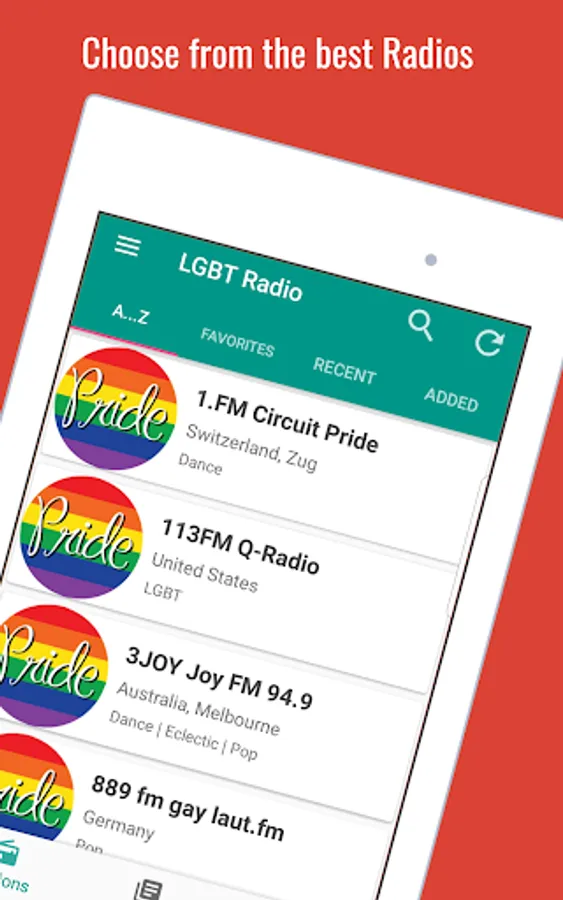 This most complete LGBT Radio App includes Radio Stations from around the world. All available live streams with LGBT news talk and music in one single app!