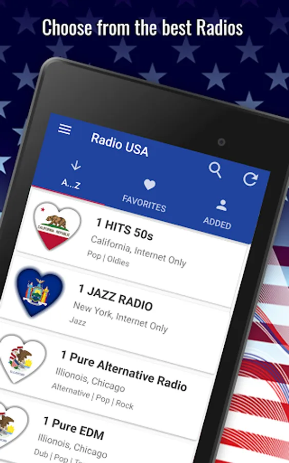 This USA Radio App with News, Sports and Music is totally free. All available - currently over 10.000 - live streams from the United States of America in one single app!