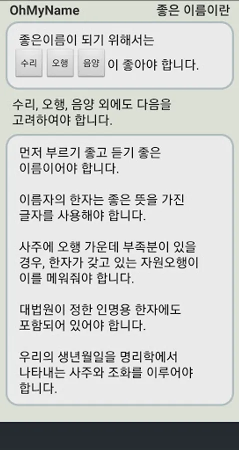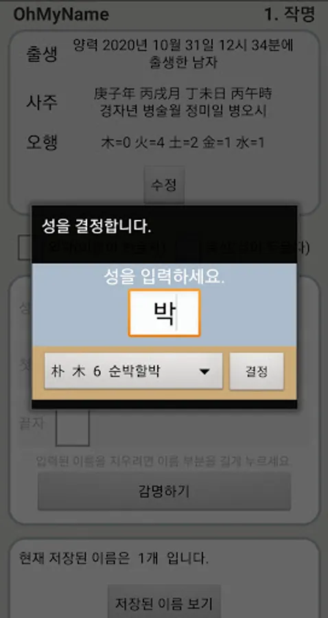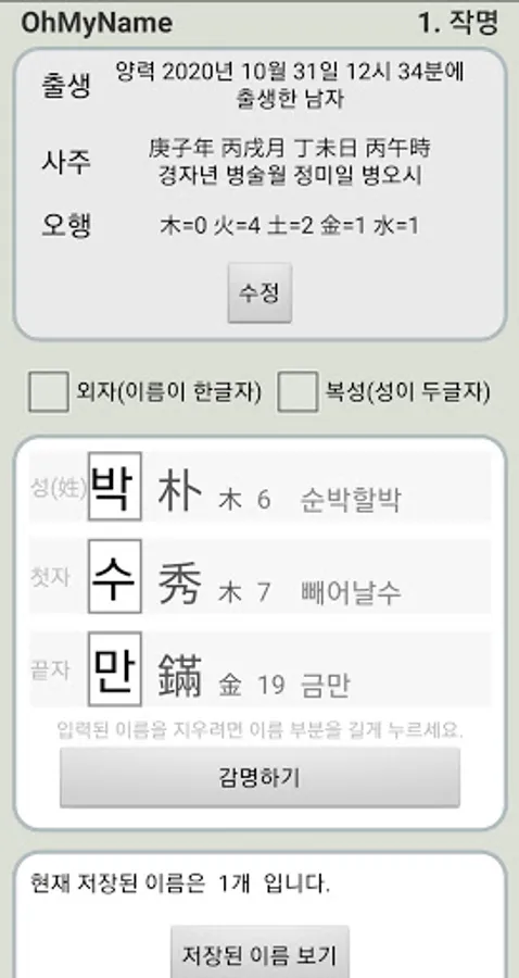 1. It tells you the number of Chinese characters that are good repairs and the first words of Hangul that are good five elements.