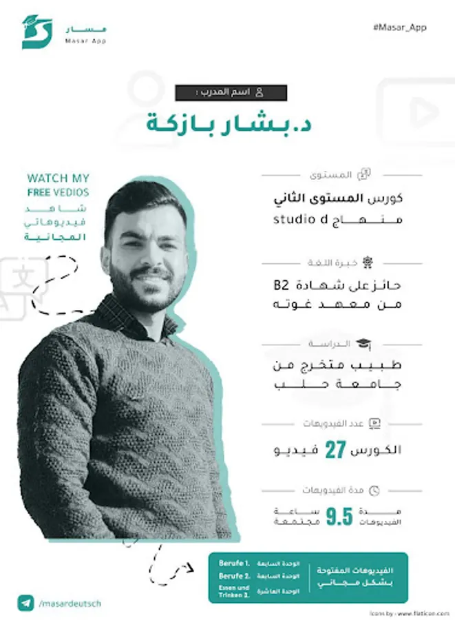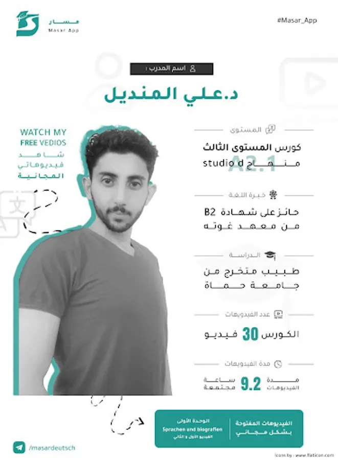 One of the most important advantages of learning German through the Masar application is the ease and convenience that the application provides to users. The application allows learners to learn the German language at any time and from anywhere, allowing them to better organize their time and learn the language at their convenient time.