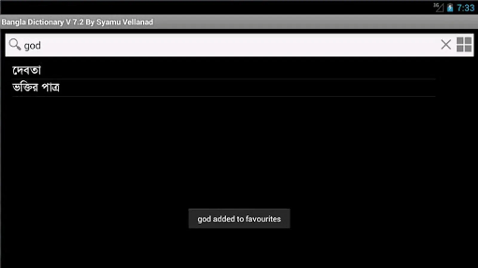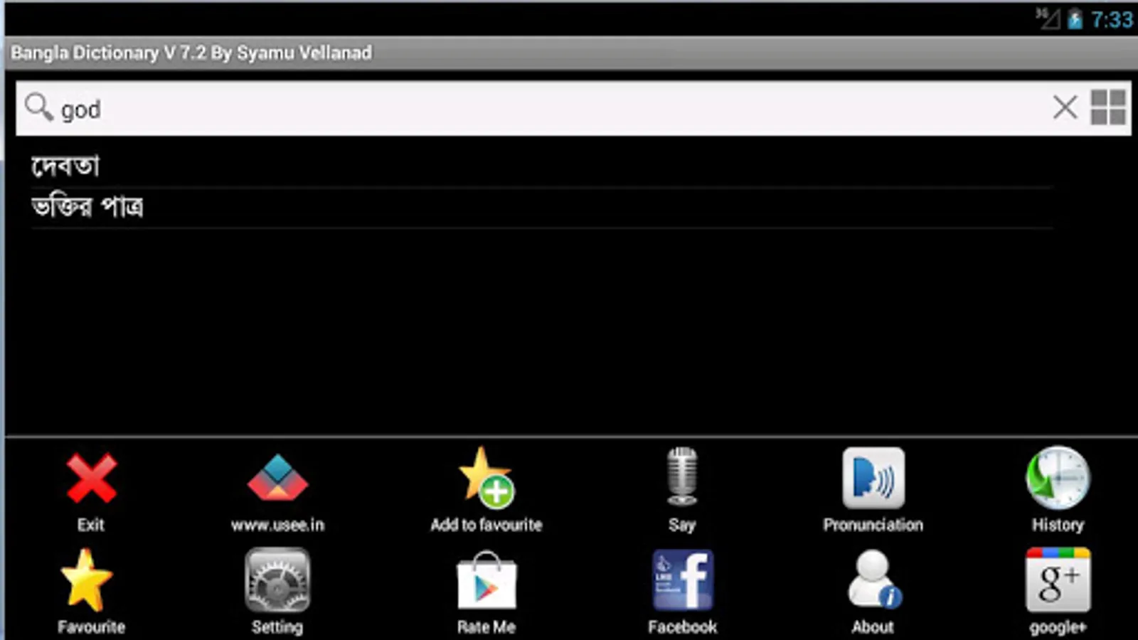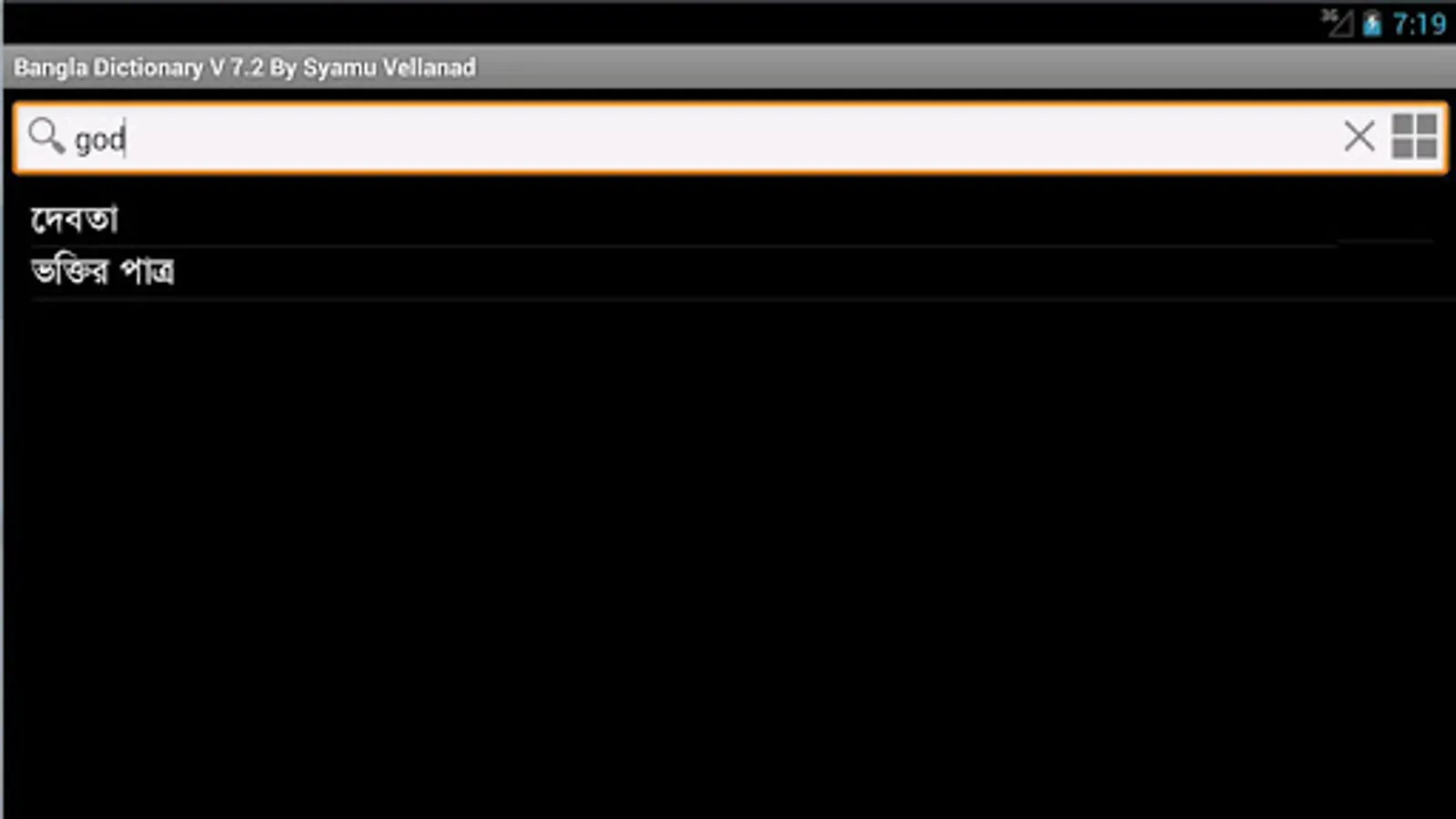 This is an absolutely freeware and fully offline English Bangla ( Bengali) Dictionary. It contain more than 85,000 words.It will be my pleasure to receive feedback and suggestion from your side.