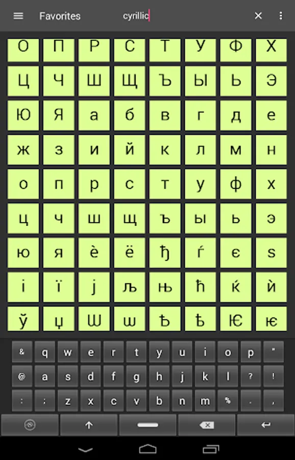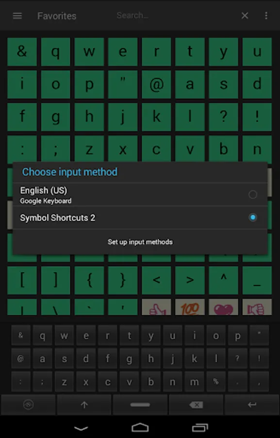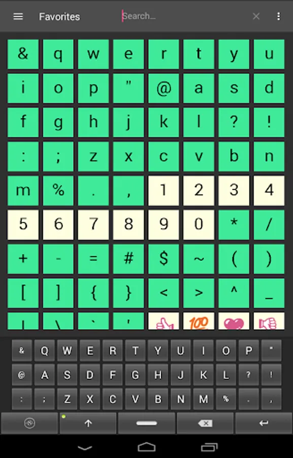 * Build android custom keyboard with any symbol by adding it to your favorites.