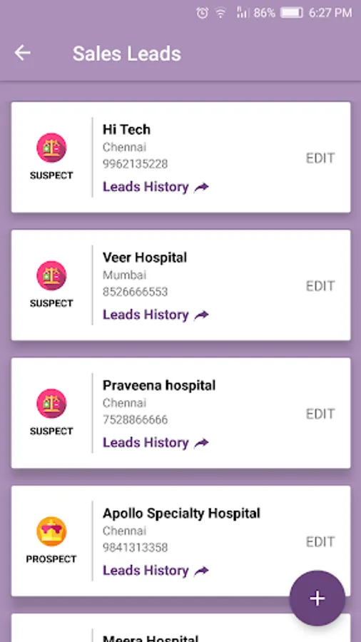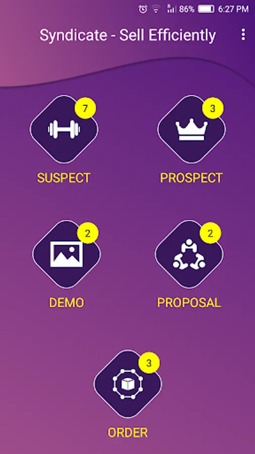 - Dashboard showing count of Customers - Prospect/Suspect/Demo/Proposal/Sale