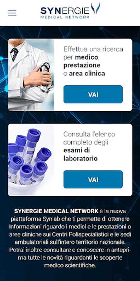 SYNERGIE MEDICAL NETWORK is the exclusive platform at the service of the Medici Synlab, which allows access to all information relating to the team, the services provided at the various locations and the latest scientific and educational news of the group.