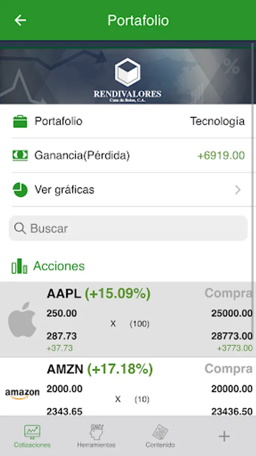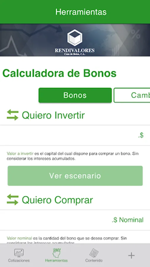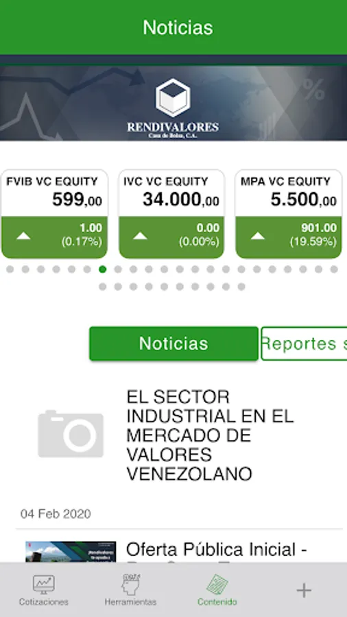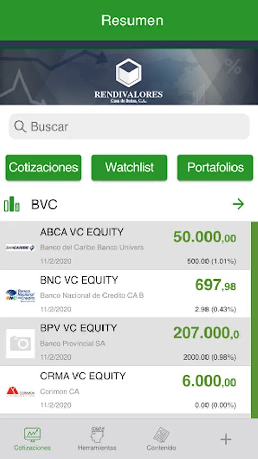 Meet real-time quotes Venezuelan bonds, stocks on Wall Street, commodities, currencies and other financial indicators. Get news, newsletters and information on the latest national and international developments. Rendivalores application lets you analyze the various financial instruments, evaluate their features, check prices, volume and market statistics, giving all the necessary information to make the best decisions.