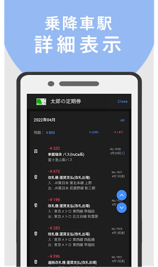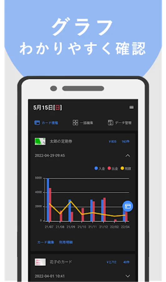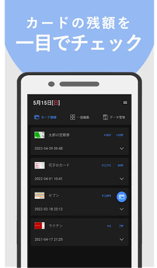 - just automatically starts app holds up the card, and save it in the smartphone takes in the usage history.