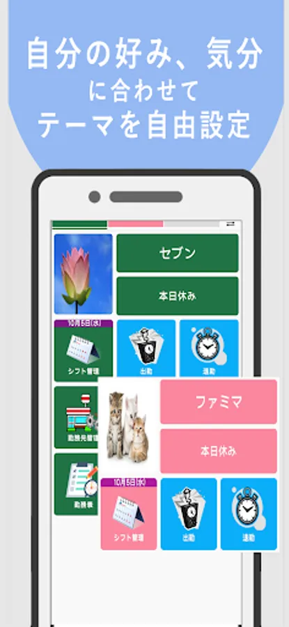 ・There are "Attend", "Leave", "Vacation", and "Break" buttons, and you can modify the scheduled work time you set in advance by tapping a few times.
