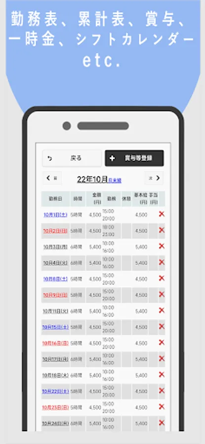 ・You can set up to three hourly wages (overtime) for weekdays, weekends, and holidays.
