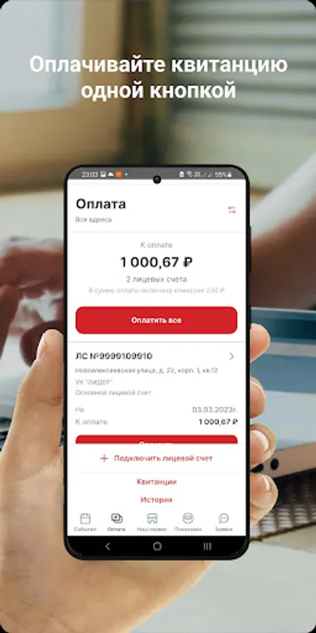 The presence of a payment history allows you to analyze the costs of commercial services.