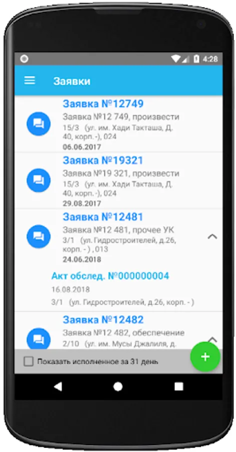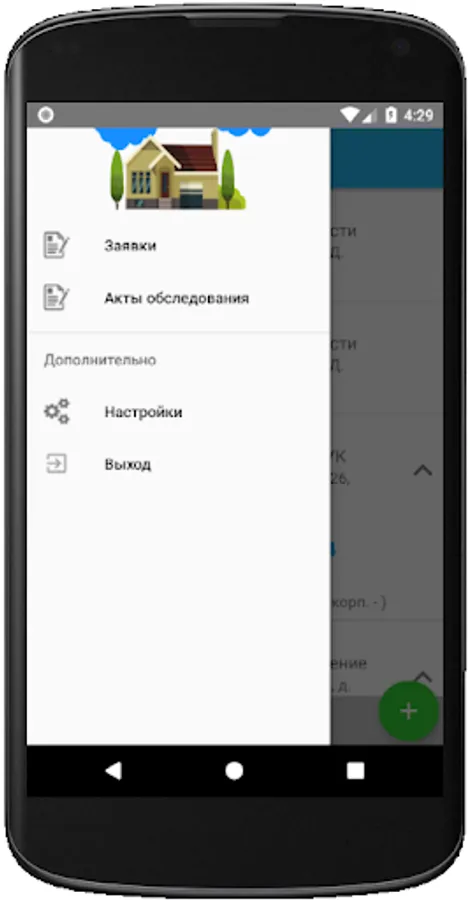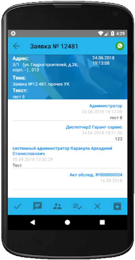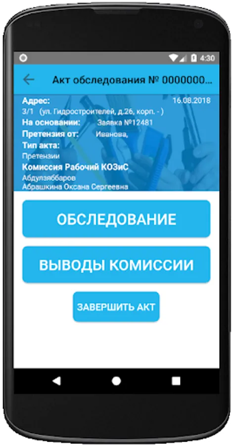 Inside the corporate mobile application LLC "PKF" Zhilkomservis "for the work of technicians and plumbers.