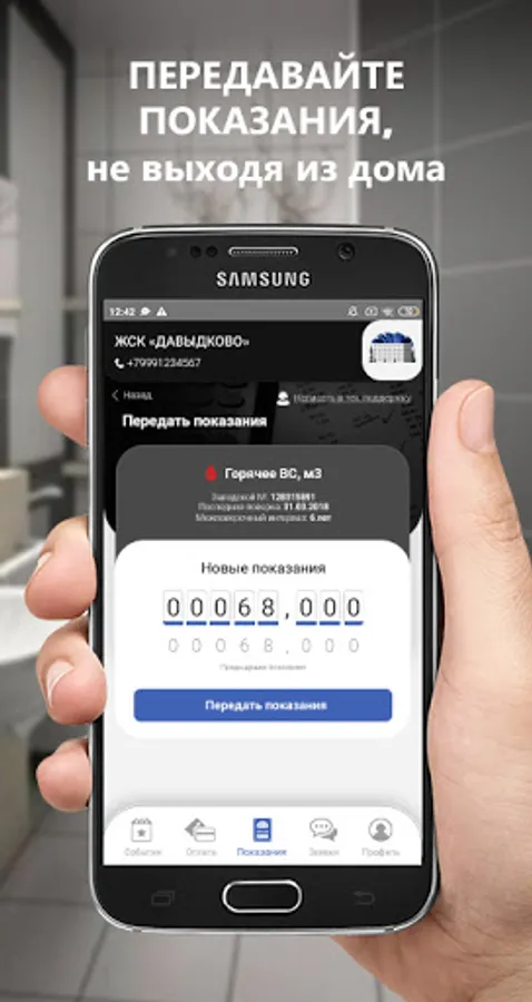Просто введите в мобильный текущие показания приборов учета. И вся информация автоматически попадет в УК, ТСЖ