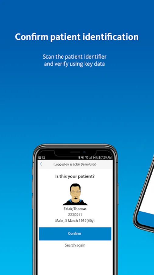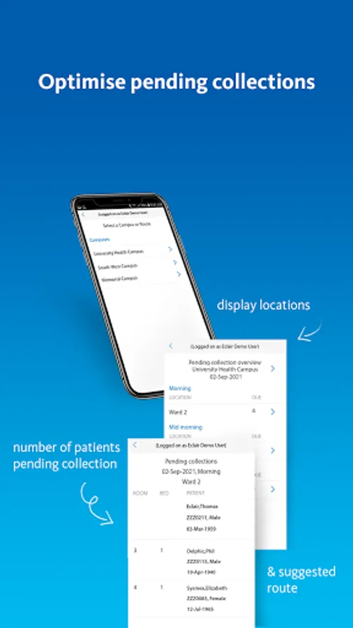 App displays patient demographic details for collection staff to confirm correct patient identification.