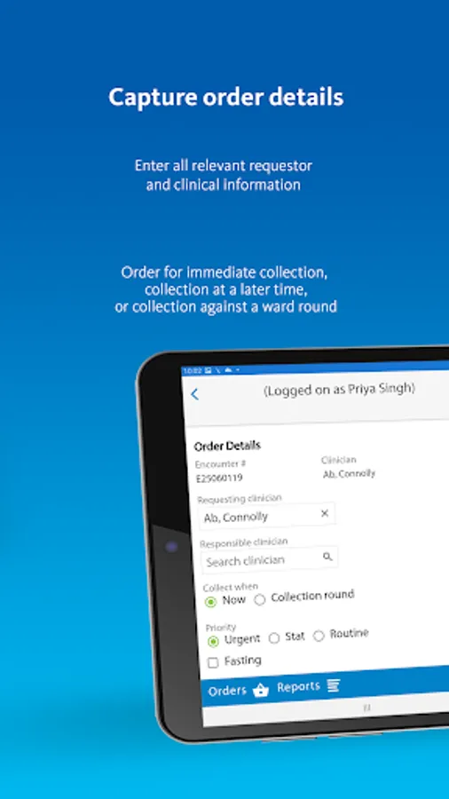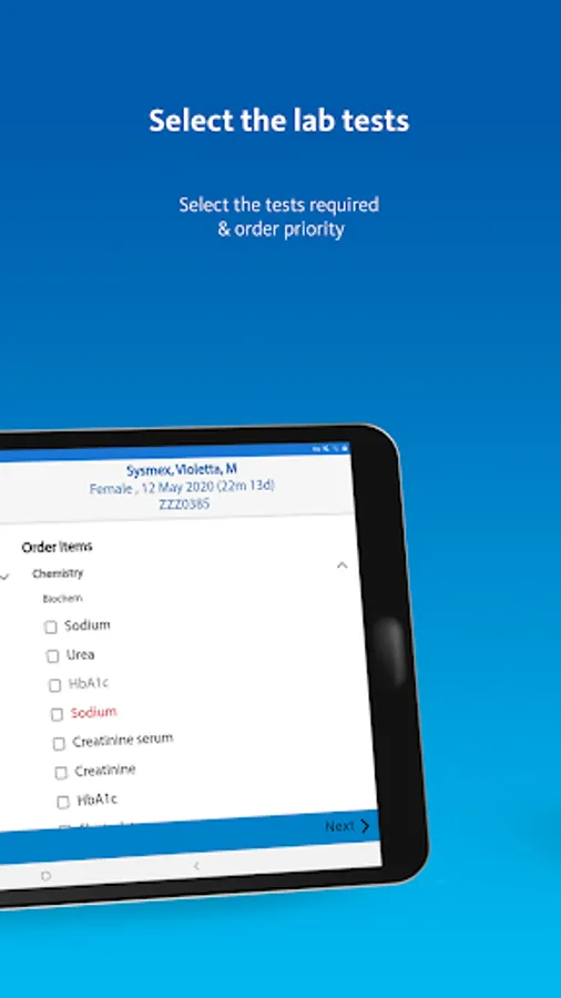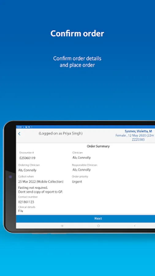 App displays patient demographic details for collection staff to confirm correct patient identification.