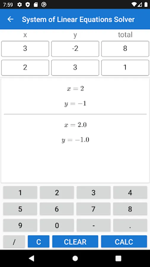 Calculator to solve any system of linear equations.