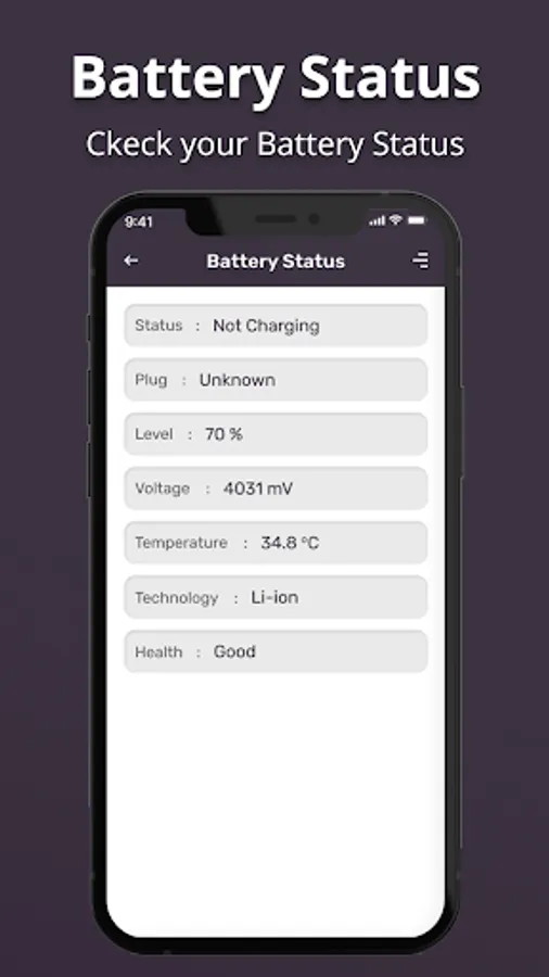 Get all your Battery Status with Battery Health Information in one click.