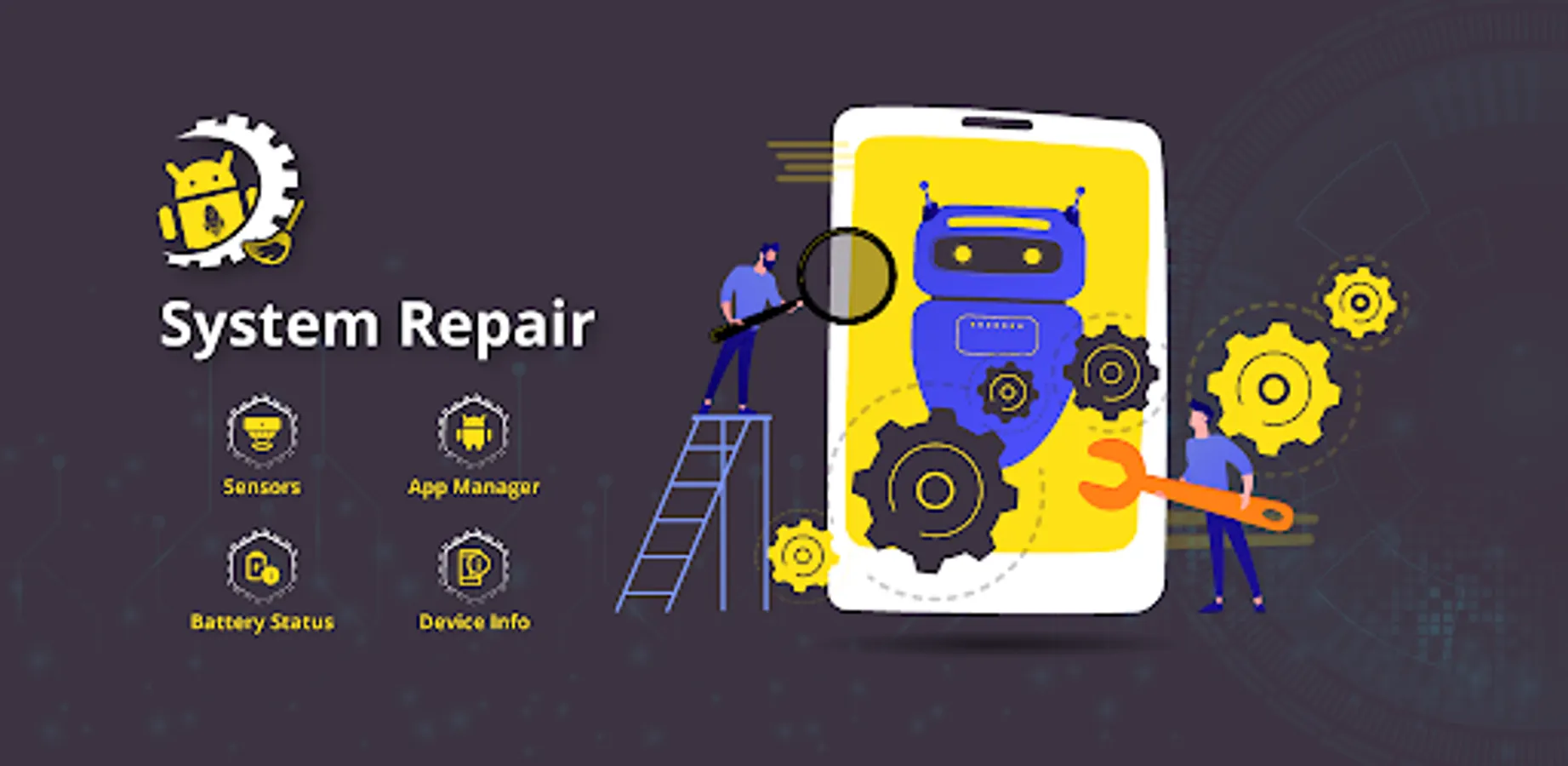 System Repair for android or Quick Fix Problems, Battery Status, Sensors Information, Device Information. System Repair for android is an amazing android system tool to fix your phone problems. Use this android error fixer and fix your problems.
