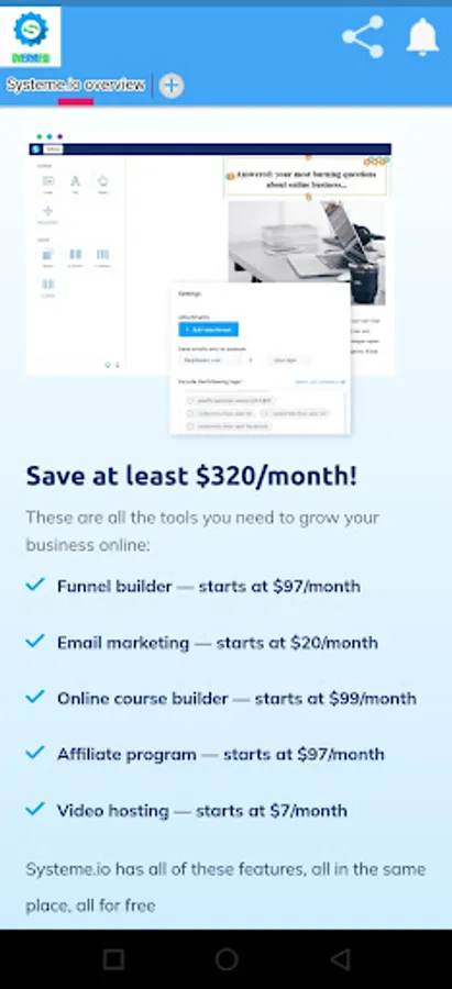 Systeme.io is an all-in-one online business platform that provides a suite of tools for entrepreneurs and businesses to create, market, and sell their products or services online. The platform was founded by Aurelien Amacker in 2017 and has gained popularity among small business owners, marketers, and bloggers.