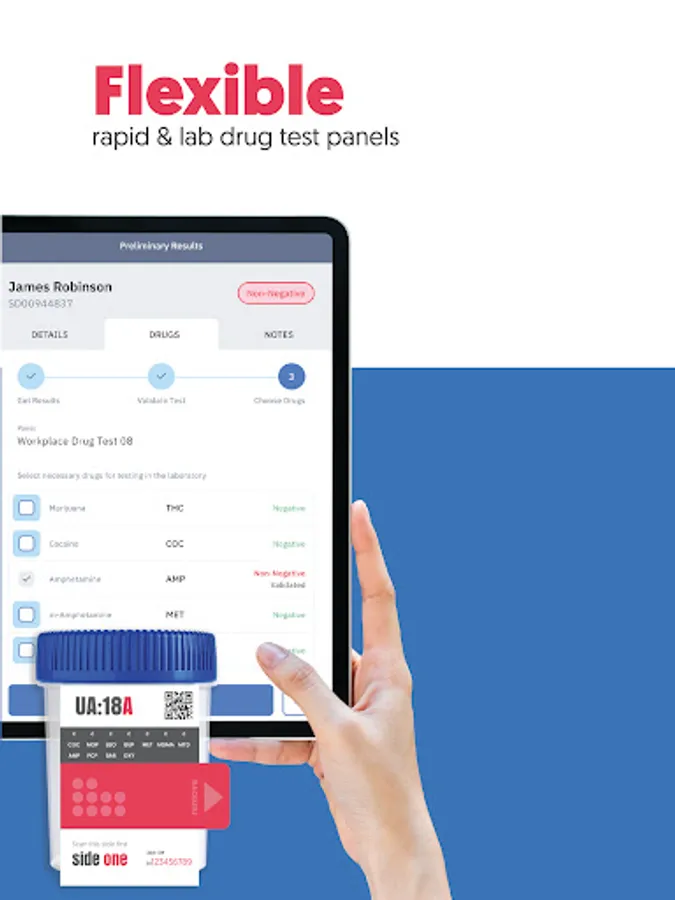 Transform your Android mobile phone or tablet iinto the Ultime Drug Testing Machine using the Labb Station mobile companion app. The Labb Station mobile companion app contains all of the same features and capabilities as the fully managed Labb Station system.