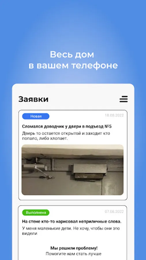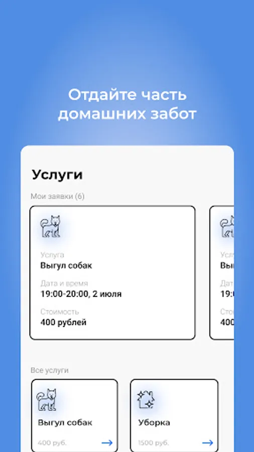 Mobile application of the Muzhik service company, which allows you to conveniently and easily solve all household issues in a couple of clicks.