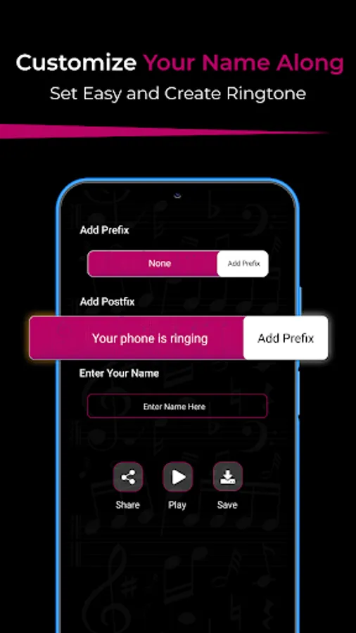 - create custom ringtones with your own name and a variety of background tracks to choose from.