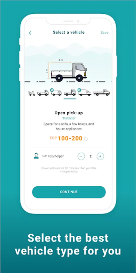 - Select the type of vehicle needed and if you need extra helpers.
