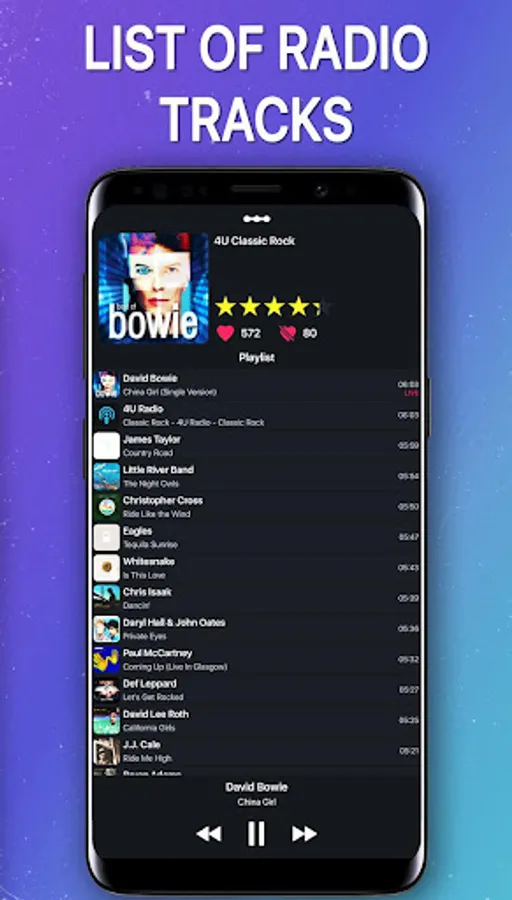 • view the history of tracks on the radio station;