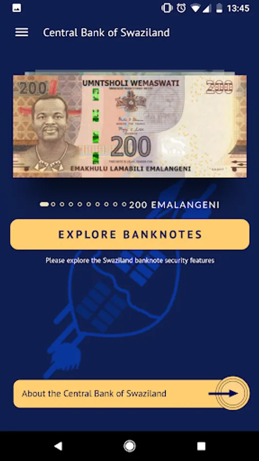 The official application of the Central Bank of Swaziland – the ‘Lilangeni’ app – is an interactive tool for exploring the current Swaziland banknotes.