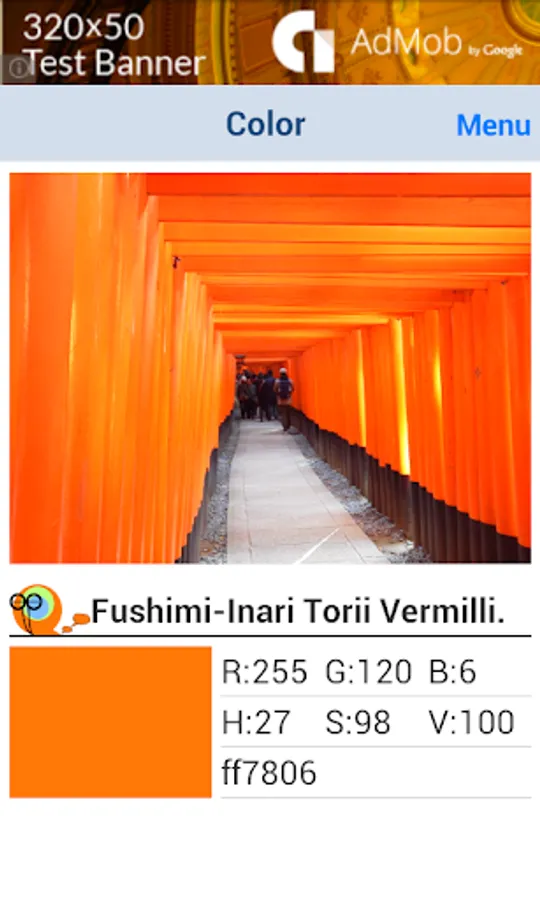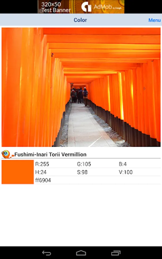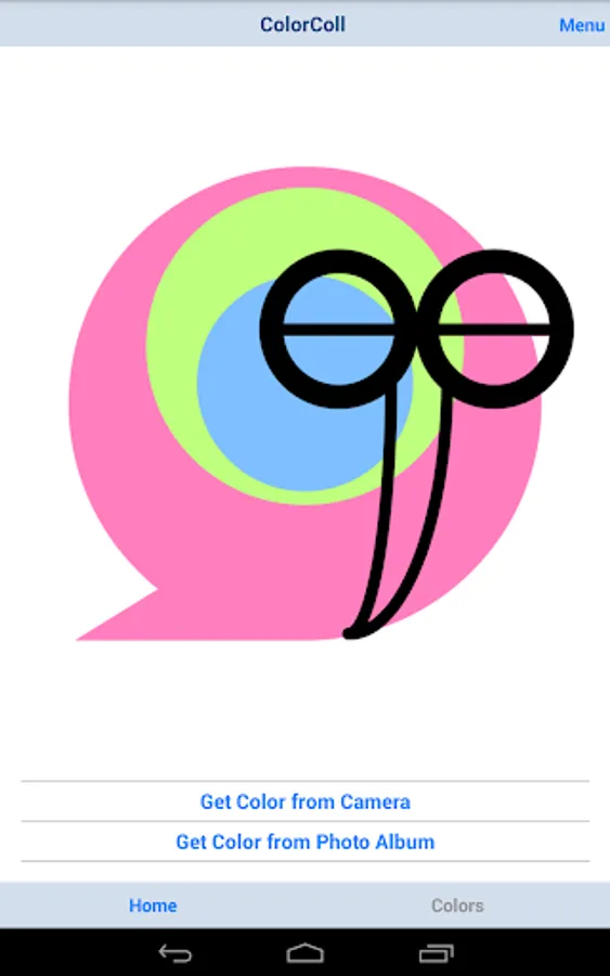 (1)Touch the "Get Color from Camera" Button in Home Screen, and Start Camera. After taking a photo, "Get Color Screen" will be shown.