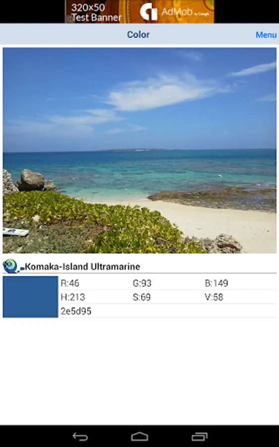 (1)Touch the "Get Color from Photo Album" Button in Home Screen, and select Photo. After selecting a photo, "Get Color Screen" will be shown.