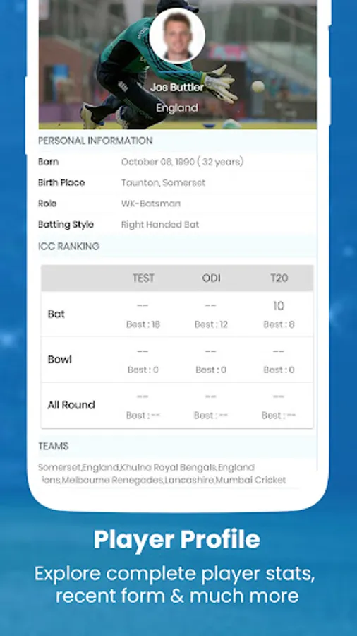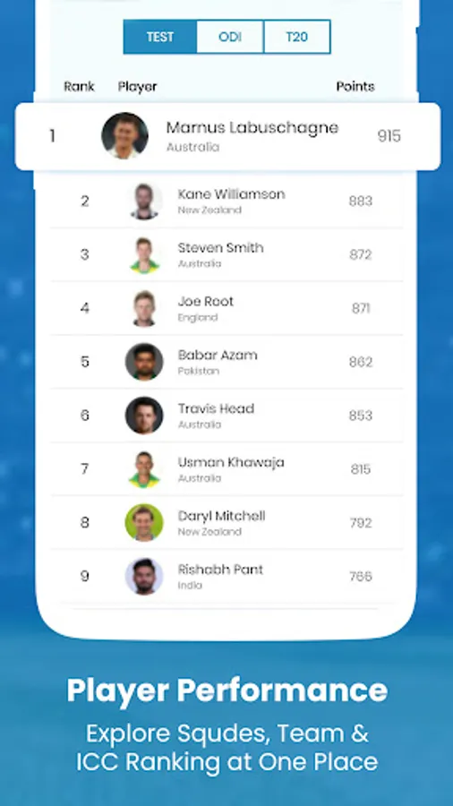 Our app provides real-time updates and live commentary on all international cricket matches, including One Day Internationals (ODIs), Test matches, and T20s.