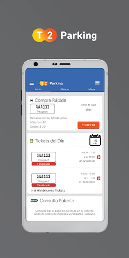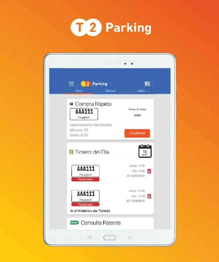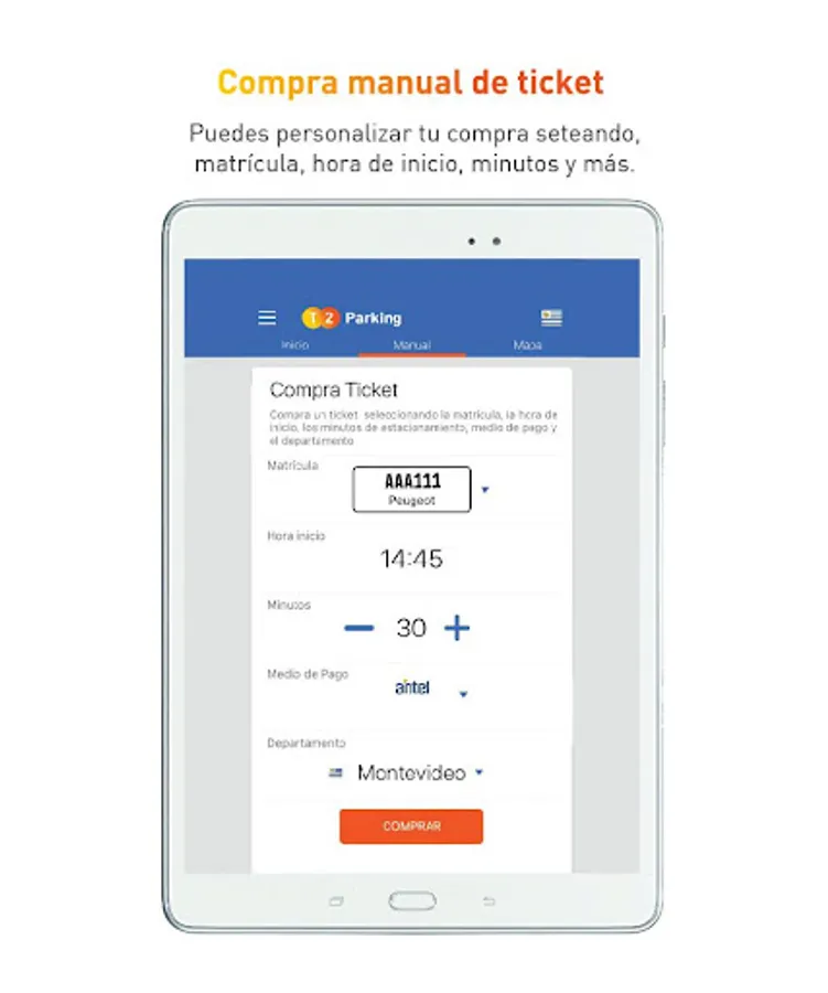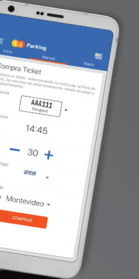 The application allows you to hire minutes of paid parking in the cities of Montevideo, Canelones, Pando, Minas, Tacuarembó and Ubatuba (San Pablo). Offering the user various forms of payment such as debit, credit cards, and telephone account (Antel, Claro and Movistar). The forms of payment vary according to the city where the purchase is made.