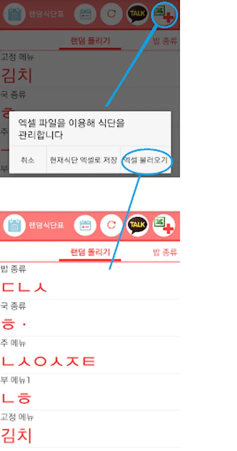 - Save: You can use the function to load / save Excel file to the device during service use.