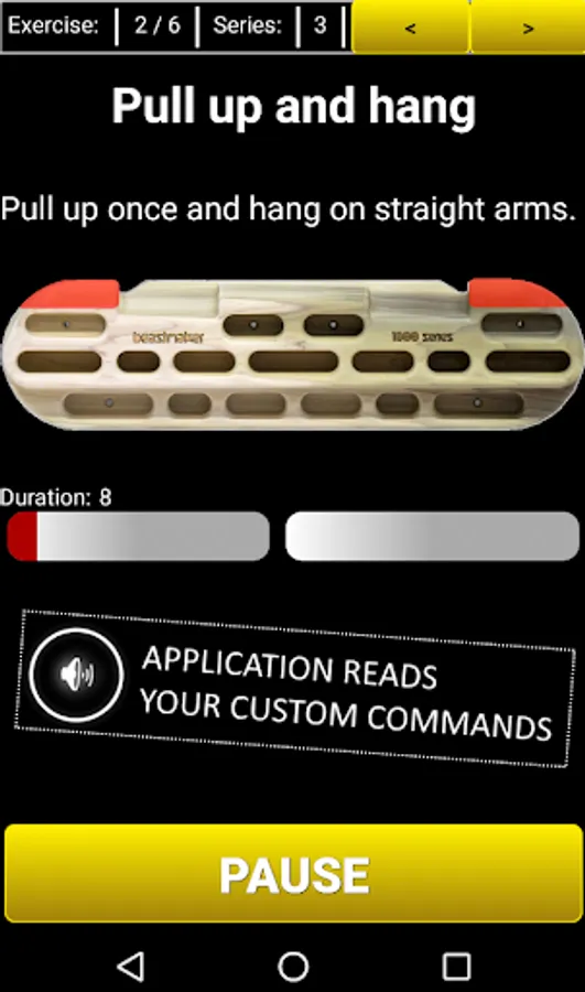 Application gives voice commands (of course TextToSpeach data in your android settings should be installed) telling you which exercises you have to do, how long you should rest, how many series etc.