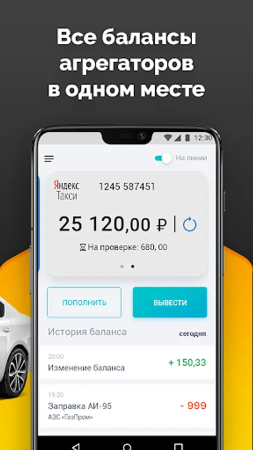 Приложение созданное для удобства водителей, которое позволяет самостоятельно управлять денежными средствами и мгновенно выводить деньги на удобную банковскую карту. Исключает всяческие контакты по запросу денег в различных мессенджерах, водитель самостоятельно контролирует свои деньги и нажатием одной кнопки производит зачисление на свою карту