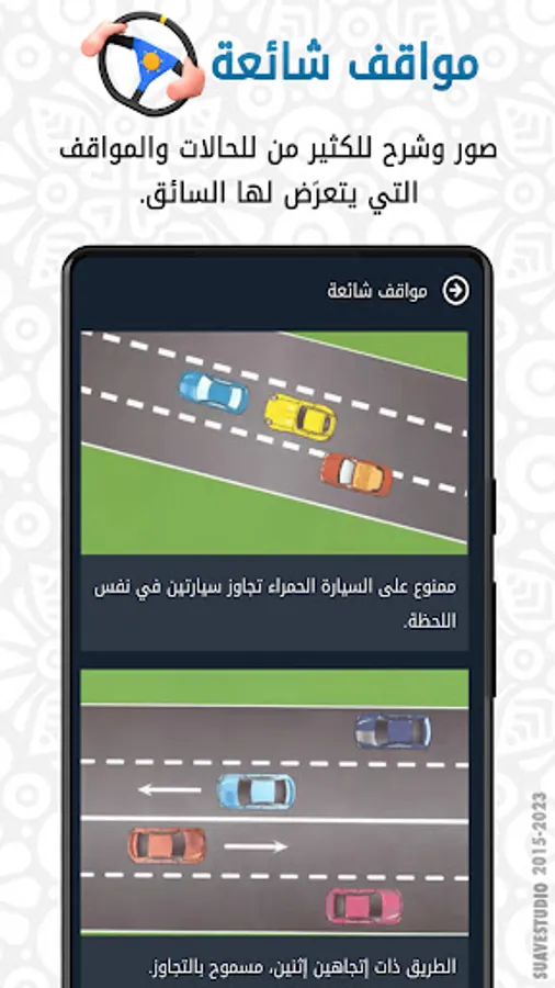Siya9ati Driving Education 2023 enables you to view all the lessons and techniques that will help you obtain a driving license with ease.