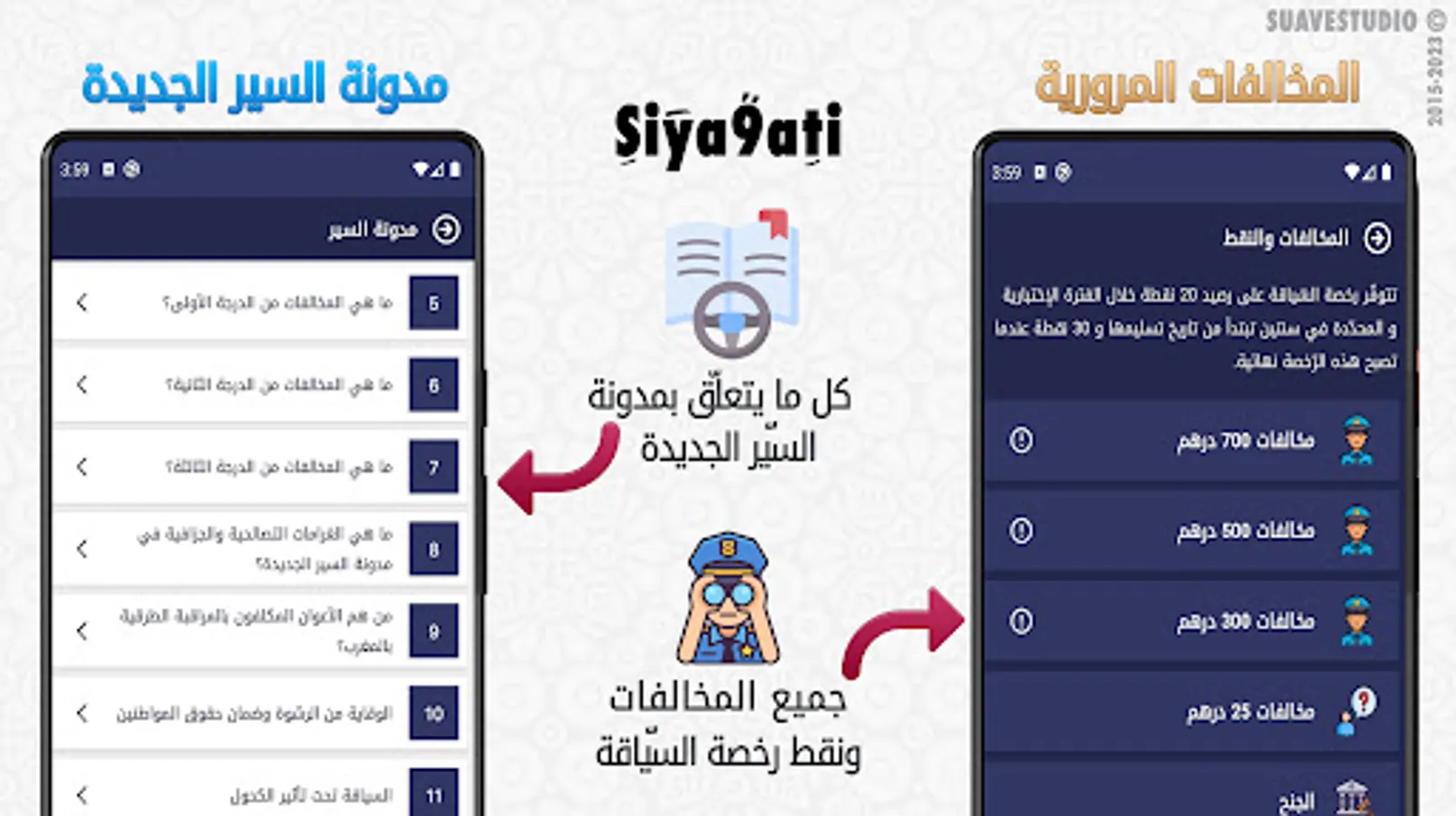 The Siya9ati driving education application on your smartphone means that you have a school. Any time you want to learn or any time you have free time, use the application and enjoy the free lessons.