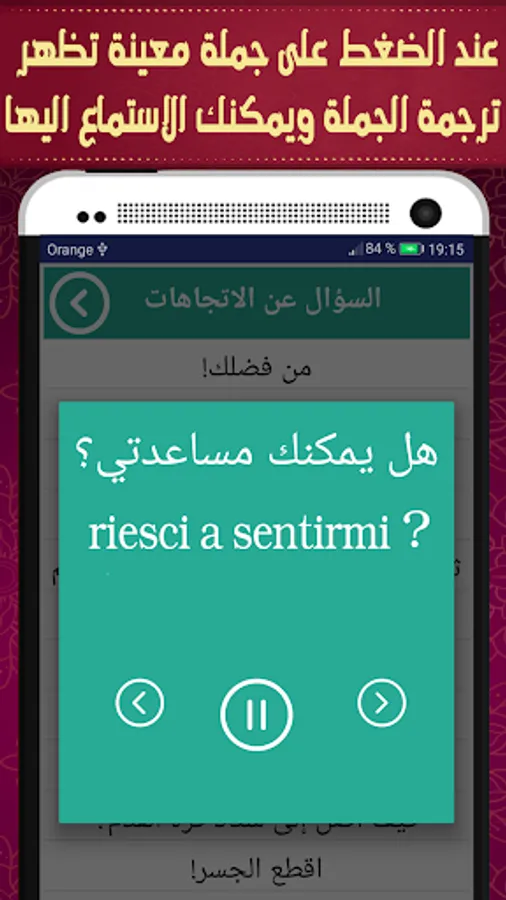 We offer you an application to learn the Italian language with sound without the Internet, this application is educational in the first degree that teaches you how to master the Italian language and one of its most important features is that you will not need any book, lesson or teacher, it is available on the sound feature to hear the rules and conversations and the most beautiful is that you will learn Italian in the Arabic language, which will facilitate Your understanding of the rules in a simple and fun way.