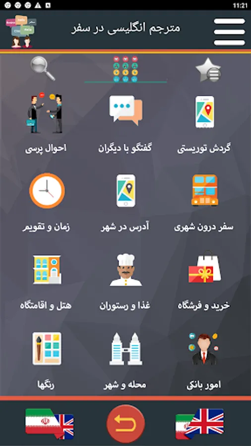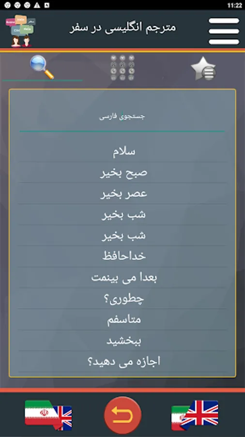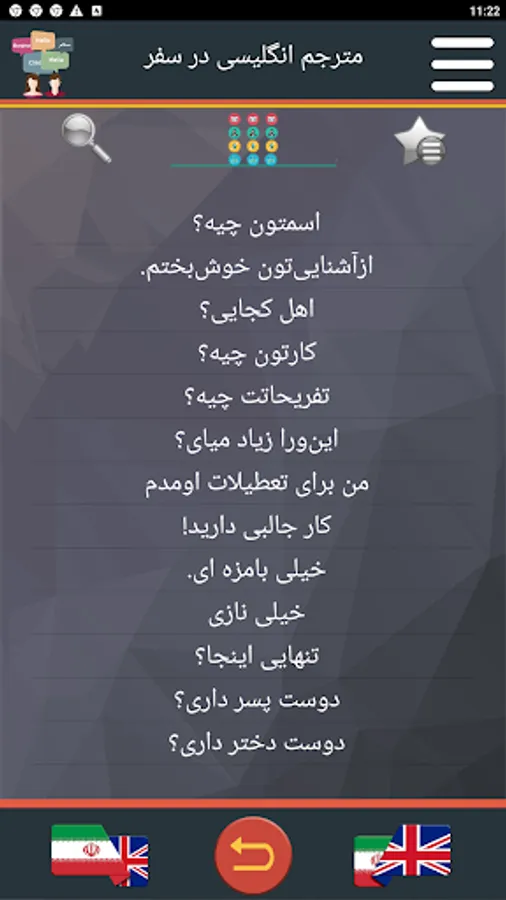 🥇ما برای شما بخشی به نام علاقه مندی ها پیش بینی کرده ایم تا جملات کاربردی و مورد علاقه خود را علامت گذاری کنید و به سادگی مجموعه جملات کاربردی خودتان را استفاده نمایید.
